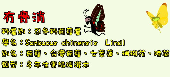冇骨消是台灣特有種,分布由平地至海拔2千5百公尺左右高地,喜歡長在向陽處,冇骨消的莖直立而多分歧。葉具有長柄,為奇數對生羽狀複葉,小葉小葉3對,近於無柄,邊緣有細鋸齒。花期為夏到秋季,為白色小花,聚繖花序排列成繖房狀,頂生於枝梢,花序間有黃色或橙紅色之杯狀線體,可分泌蜜汁,吸引蝴蝶前來採集,果實為球形,成熟後橙紅色,十分可愛。